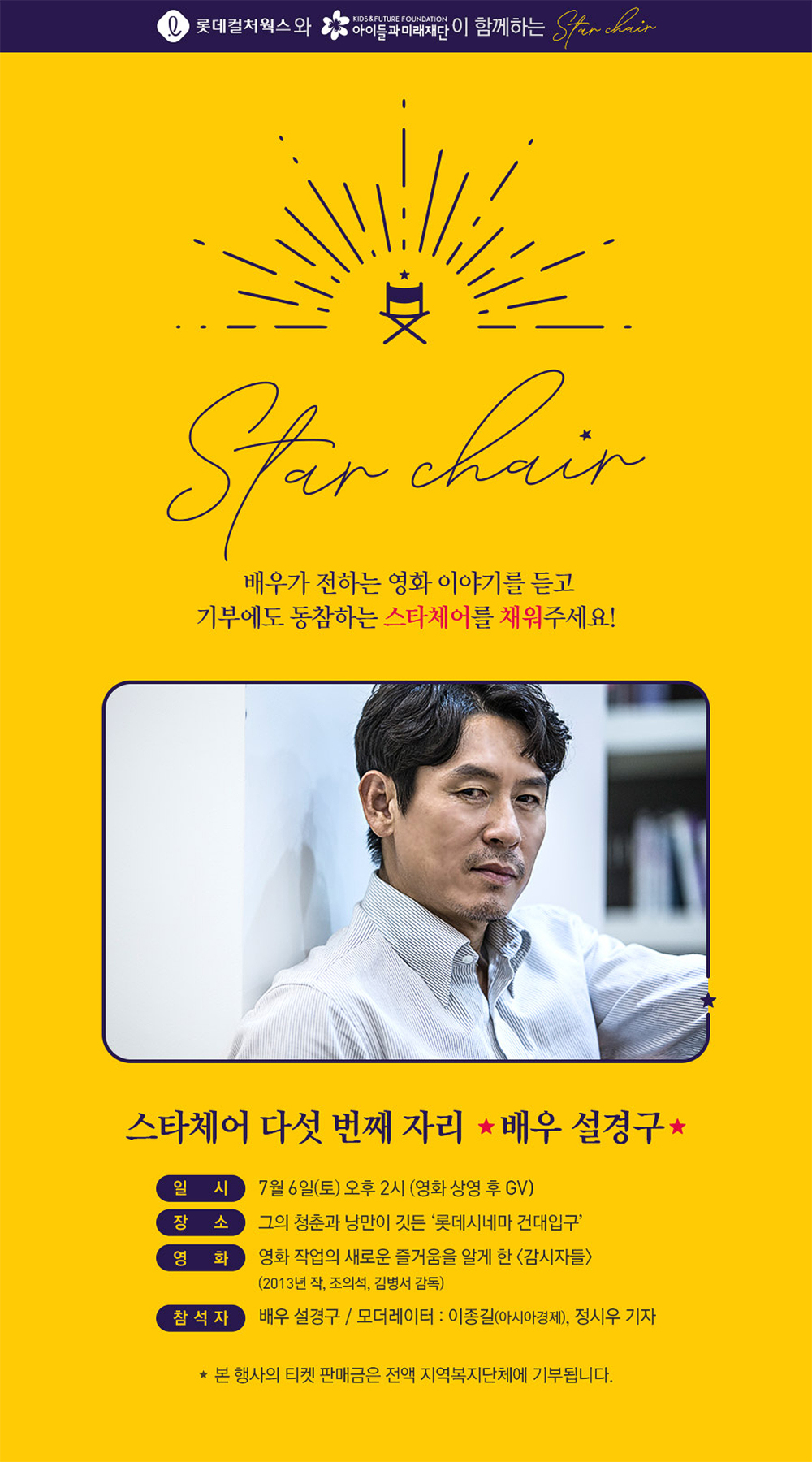 | [2019.07.06] 롯데컬처웍스와 아이들과미래재단이 함께하는 Star chair - 배우 설경구 (0) | 2019.07.13 |