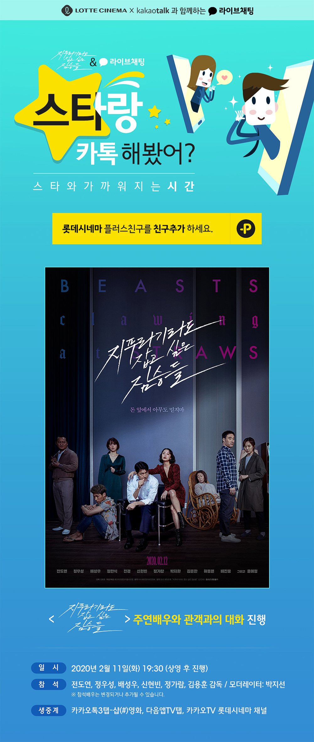 2020.02.11 롯데 시네마 x 카카오톡과 함께하는 지푸라기라도 잡고 싶은 짐승들 라이브챗